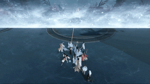 4、排浪階段,所有人提前回在中間方便排浪,被點名玩家按照箭頭方向跑到場地邊緣開解控排浪即可,實在躲不過去的可以用流月無痕等無敵技能躲避。